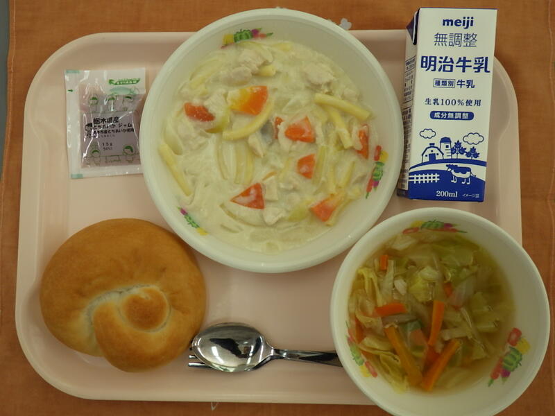 今日の給食 投稿日時 : 02/10 雀宮東小学校管理者 〇こんだて 米粉パン 牛乳 いちごジャム マカロニのクリーム煮 キャベツスープ {{options.likeCount}} {{options.likeCount}}