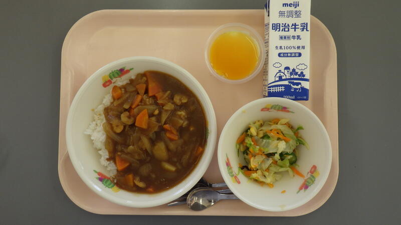 今日の給食 投稿日時 : 10/24 雀宮東小学校管理者 〇こんだて おはなし給食 麦入りご飯 牛乳 えびカレー ゆで野菜 マリネドレッシング 手作りプリン {{options.likeCount}} {{options.likeCount}}
