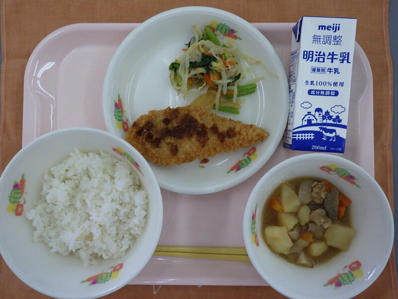 今日の給食 投稿日時 : 13:15 雀宮東小学校管理者 〇こんだて 麦入りご飯 牛乳 白身魚フライ からし和え 豚肉と野菜のうま煮 {{options.likeCount}} {{options.likeCount}}
