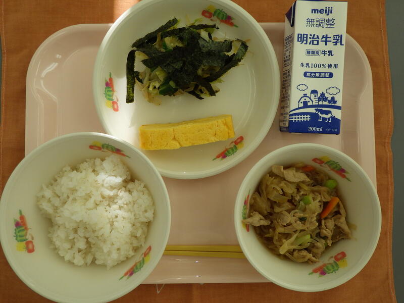 今日の給食 投稿日時 : 12/19 雀宮東小学校管理者 〇こんだて 麦入りご飯 牛乳 セルフ豚丼 厚焼卵 磯辺和え {{options.likeCount}} {{options.likeCount}}