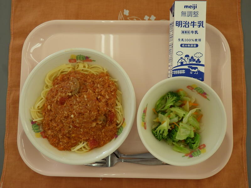 今日の給食 投稿日時 : 15:14 雀宮東小学校管理者 〇こんだて スパゲティ 牛乳 秋の香りのミートソース ゆで野菜 玉ねぎドレッシング {{options.likeCount}} {{options.likeCount}}