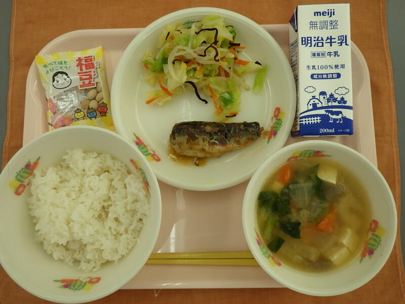 今日の給食 投稿日時 : 02/03 雀宮東小学校管理者 〇こんだて 節分献立 すずどん米ご飯 牛乳 いわしのごま味噌煮 塩こんぶ和え 味噌けんちん汁 福豆 {{options.likeCount}} {{options.likeCount}}