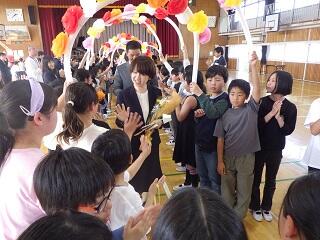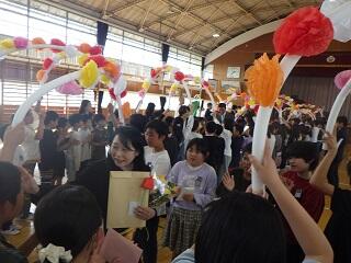 最後はアーチを作ってのお見送りです。たくさんの「ありがとう」を伝えることができました。