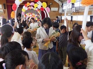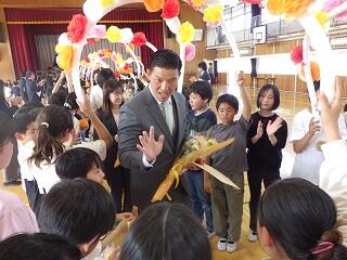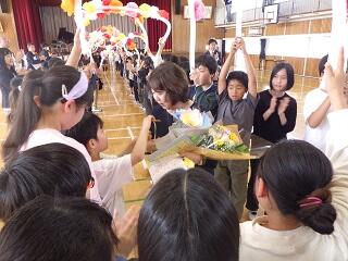 その後、6年生の代表児童がお別れの言葉を伝え、みんなで大きな声で校歌を歌いました。