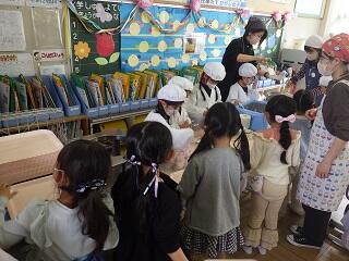 教室では、6年生のお兄さんお姉さんが朝のお手伝いをしてくれました。