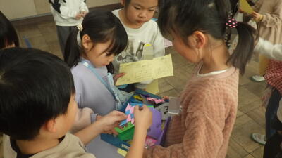 「ゲームに参加した人は、折り紙で作った賞品を選んでね」