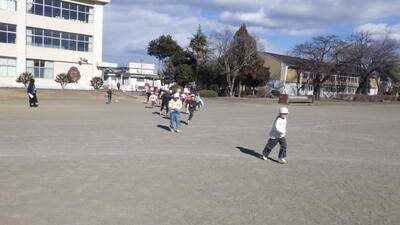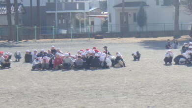 校庭で遊んでいた児童は、その場で座って揺れが収まるのを待ちます。