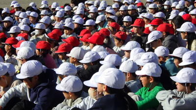 校庭に集まるとすぐに、先生方が人数を数えて、逃げ遅れた人がいないか確認をします。