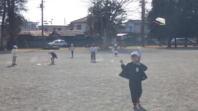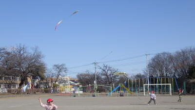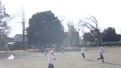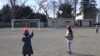 生活科「みんなであそぼう~ふゆとなかよし~」の学習で、1年生が凧揚げに挑戦しました。