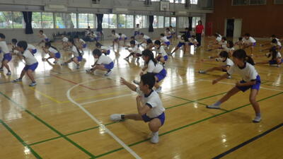4・5・6年生の合同練習に先駆け、表現種目「よさこいソーラン」をどのくらい覚えているのか確かめてみるようです。