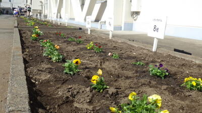 10/27、28の2日間に分けて、南校舎前のいきいき花壇の植え替えを行いました。