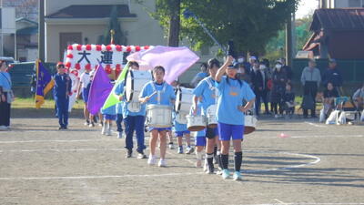 開会式では、鼓隊部の奏でる軽快なリズムで入場します。