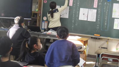 4月からの進学に向け、中学校の先生方が小学校で授業をしてくださる「乗り入れ授業」が行われました。