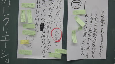 まとめた理由を全体に発表したあと…