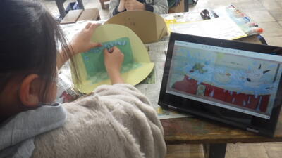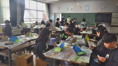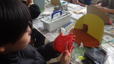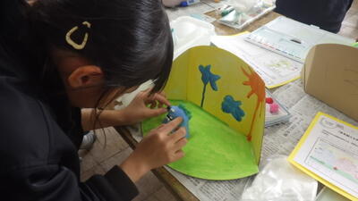 年末の図工で4年生が取り組んでいたのが「本から飛び出した物語」の工作です。