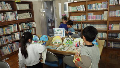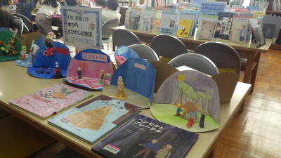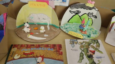 出来上がった作品は、本と一緒に図書室に展示されています。