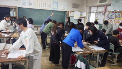 良い活動をしていると紹介されたグループをよく見ようと自然に周りに集まってきたりと、進んで学習する姿が見られました。