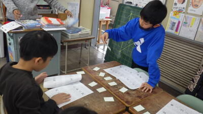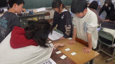 国語「いにしえの言葉に親しもう(古文)」の発展学習として、5年生が「百人一首大会」を行っていました。