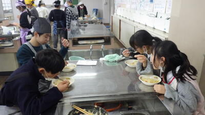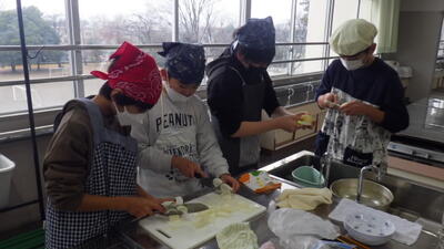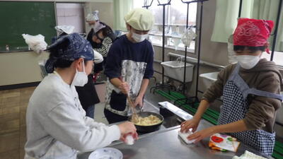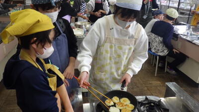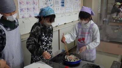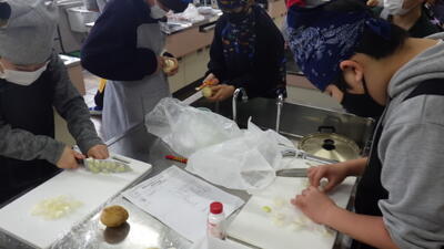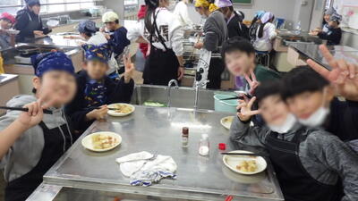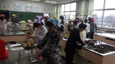 冬休み前の最後の日、6年生のお楽しみは調理実習のようです。