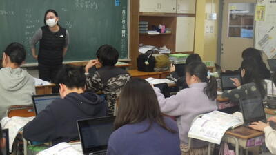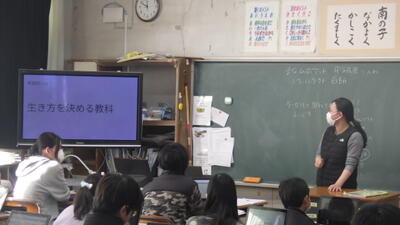 4月からの進学に向け、中学校の先生方が小学校で授業をしてくださる「乗り入れ授業」が行われました。