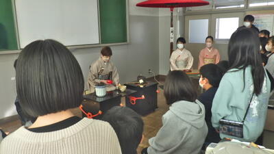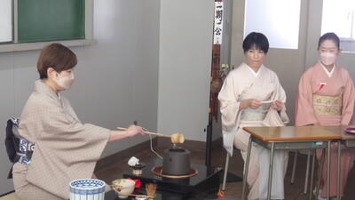 まずは、講師の先生方が茶会の流れや作法を実践してみせてくださいました。