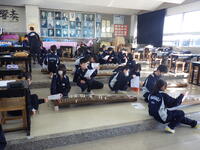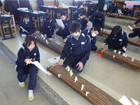 2月12日(木)1年3組音楽の授業で、箏の演奏が行われました。「さくら」を3人組で練習していました。生徒は真剣に取り組んでおり、美し箏の響きが聞こえてきました。