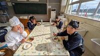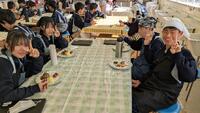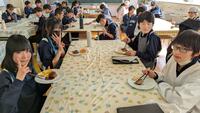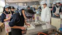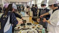 先生から安全上の注意点を聞いて、ハンバーグの調理実習に取り組みました。調理室からよいにおいがしてきました。みんな笑顔で真剣に取り組んでいます。今週、木曜日まで2年生全クラスが実習していきます。
