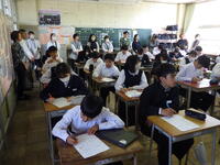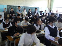 6名の生徒がそれぞれ自分の言葉で意見を述べ、「みんな思いやりがあり、明るく元気」「明るくあいさつができる」などの良さがある。課題は「けじめがつかないので、メリハリを付けたい」といっていました。更に、「生徒一人一人の意見が生かせる学校にしたい」「思いやりがあり、助け合える学校にしたい」と目指す学校像を述べてくれました。