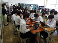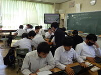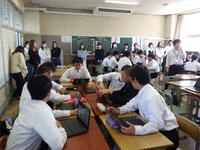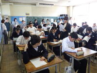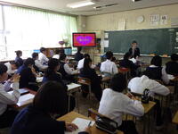 本校交通安全係が、道路交通法の改正にあたり、自転車の乗り方や交通法規などについて分かりやすく説明しました。生徒からは「自転車に乗るときはヘルメットをかぶり、交通ルールを守っていきたい。」「ルールを守らないと、自分達が加害者になることもあるんだ。」などの声が聞こえてきました。