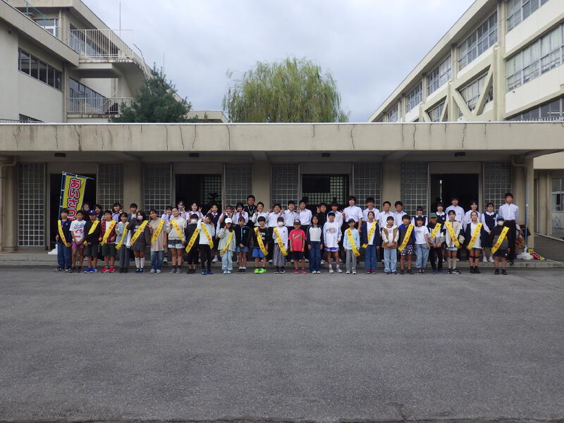 小中合同あいさつ運動(細谷小)