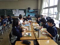 栄養教諭が季節や行事にちなんだ食事、国や地域にちなんだ食事など工夫したメニューを考えてくれています。そして、調理員の方々が衛生面に配慮しながら、おいしく安全な料理を提供してくれています。毎日、給食が楽しみです。