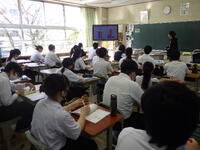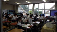 10月7日(火)給食委員会の生徒が考えた給食クイズを行っています。本日の給食メニューにちなんだ楽しいクイズが出題されています。3年生のクラスでも真剣に回答していました。