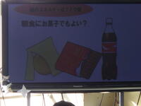 朝食を食べているかなどのアンケートを紹介し、「朝食をとるとよい」ことについてクイズなどを入れながら、楽しく学ぶことができました。