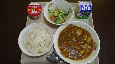 五穀ご飯・チキンカレー・牛乳・海藻サラダ・ヨーグルト