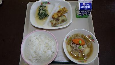 麦入りご飯・牛乳・ちくわの二色揚げ・おろしあえ・肉じゃが