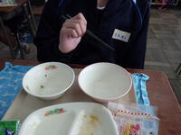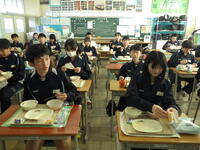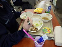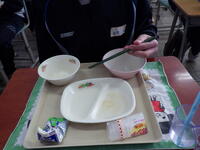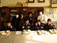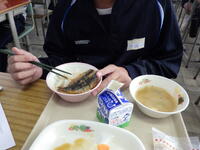 インフルエンザ等の感染対策を行いながら、「鮭のムニエル」を行っています。栄養教諭のサポートももらい手際よく作業を行っています。安全面・衛生面に注意しながら、調理した鮭のムニエルと付け合わせをおいしくいただきました。調理室からとっても良いにおいがしたので、思わず足を運びました。