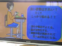 お昼の放送で給食委員が正しいお箸の使い方について、映像を使いながら説明していました。正しい姿勢でおいしく給食をいただきましょう。正しい姿勢で食事を取ると、消化や吸収も良くなります。皆さんで気を付けていきましょう。