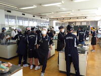 先生から安全上の注意点を聞いて、丁寧に調理し、切り終わったキュウリは調味料を付けておいしくいただきました。この後は、ハンバーグをつくるということです。今から楽しみですね。