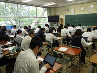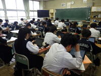 本校交通安全係が、道路交通法の改正にあたり、自転車の乗り方や交通法規などについて分かりやすく説明しました。生徒からは「自転車に乗るときはヘルメットをかぶり、交通ルールを守っていきたい。」「ルールを守らないと、自分達が加害者になることもあるんだ。」などの声が聞こえてきました。