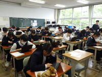 保健室では3年生が、図書室では1,2年生が検診をしていただきました。生徒は静かに待って、スムーズに検診が進んでいきます。