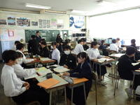 2年1、2組保健体育で「ソフトボール・これまでやってきた基本技能を試合の中で使おう」、2年3組で社会科で「日露戦争は起こり、日本にどんな影響を与えたのだろう」の研究授業を行いました。本校教員が授業を参観し、授業展開や発問の仕方についてアドバイスをしていました。
