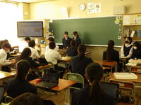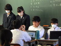 2年4組で技術・家庭科の授業を、指導教諭のアドバイスを受け意欲的に行いました。「この後、今回経験したことを生かして、教師になるために努力していきます。」と力強く挨拶していました。