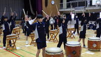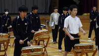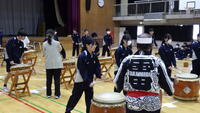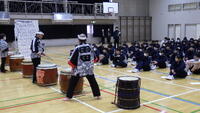 2年生総合的な学習の時間に和太鼓の体験を行いました。市教委の主催事業で和太鼓演奏体験を行いました。