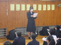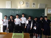 1年生は学級委員長より学級の良さと改善点について、2年生は実行委員長よりスキー教室と立志式について、3年生は学年主任より受験の心構えについて話しがありました。