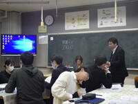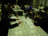 本校では、授業を小グループ内で互いに参観することで、授業力向上につなげる取組を行っています。研究協議では、授業の導入、展開、終末に分け、生徒の変容が見られる有効であった手立てについて、意見を交わしました。