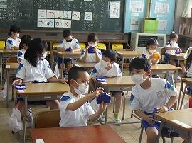 入学から3か月が経ち、学校で様々な経験をしました。図工の授業で様々な作品を作ったり、生活科の授業であさがおの花を使って色水を作ったりしました。友達と笑い合いながら楽しそうに授業を受けています。