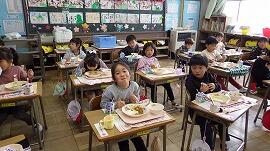 給食の時間には嬉しそうにお弁当を開け,みんな美味しそうに食べていました。