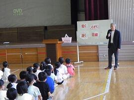 学校歯科医の鈴木先生と4名の歯科衛生士さんに来ていただき,歯の健康教室を行いました。まず,自分の歯の汚れ具合をチェックするために歯の染め出しを行いました。磨き残しがある部分を鏡で見ながらワークシートに書きました。その後,その汚れが落ちるようブラッシングをし,正しいみがき方を学びました。3時間目は,体育館で学校歯科医の鈴木先生からむし歯にどうしてなるか映像やお話を聞きながら勉強しました。おやつを食べてもいいけどだらだら食べずに,時間を区切って食べることや食べたらすぐみがく習慣をつけることが大切だとお話ししてくださいました。3年生は歯が生え変わる大切な時期です。自分の歯は自分で守れるようこれからも,給食の後などしっかり磨いていきたいです。
