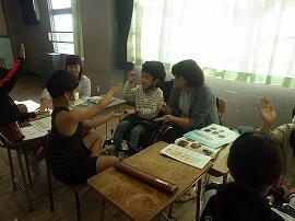 のざわ特別支援学校と居住地交流を行いました。1年生から交流しているので,知っている子もいました。音楽を行い,一緒に歌を歌ったり手遊びをしたりしました。子供はコミュニケーション力が高く,すぐに仲良くなり,車いすを押してあげたり話しかけたり,お互い積極的に関わることができました。最後に運動会のダンスを披露したところ,一緒に体を動かし笑顔を見せていました。休み時間は,校庭を案内し,帰り際は「また来てね。」と声を掛けるなど,楽しい時間を過ごすことができました。次の交流が楽しみです。