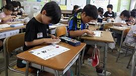 PTAの親子活動で,ふくべ細工を作成しました。子供達は,下書きのイメージ図を基に,ふくべのサイズ選びから始まりました。大小様々なかたちのふくべからどれにしようか迷っていました。